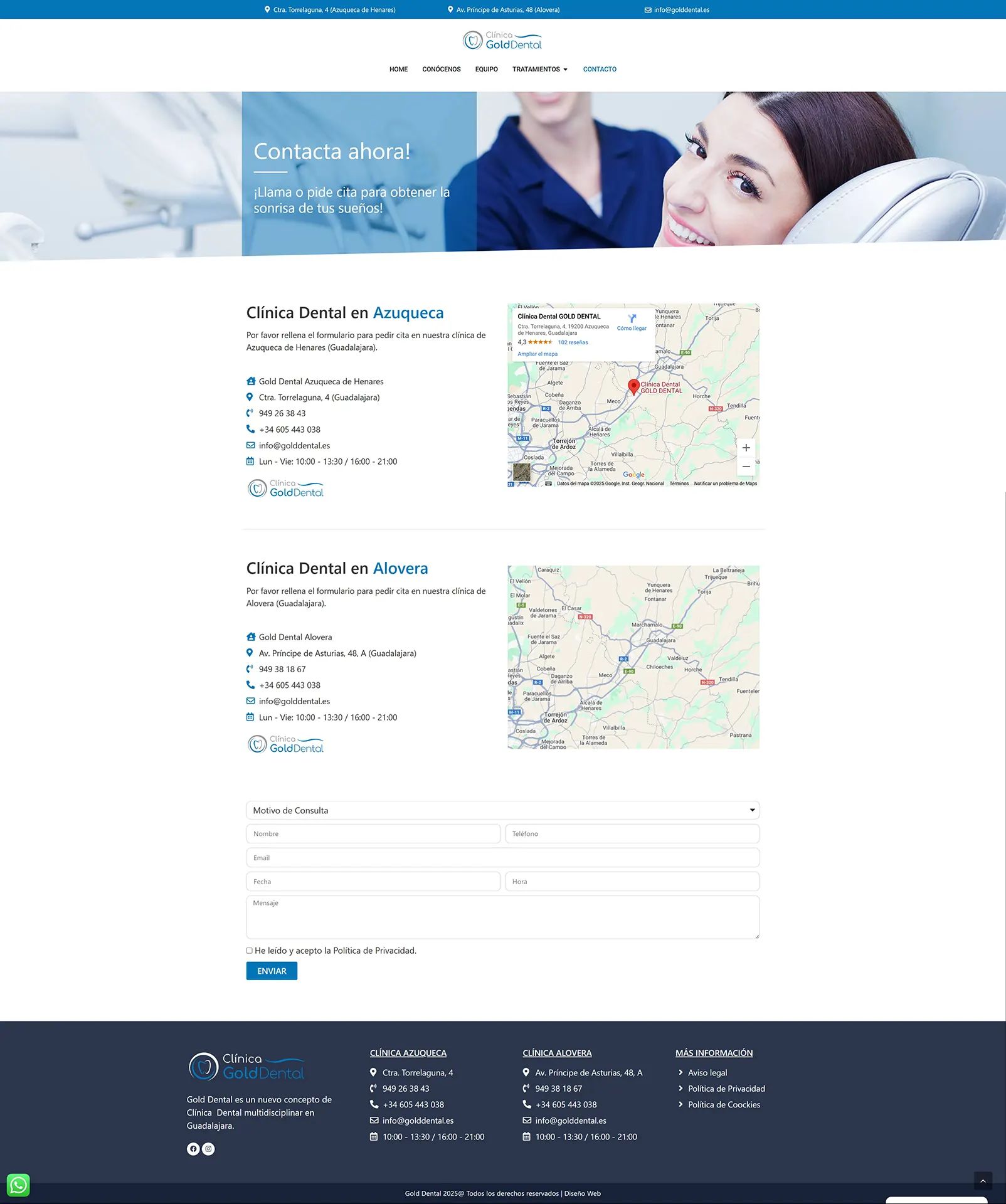 Gold Dental necesitaba una web con unos corporativos muy peculiares que forman a una clínica dental referente en su sector. Sin duda un proyecto muy interesante con todos sus servicios dentales en Guadalajara.